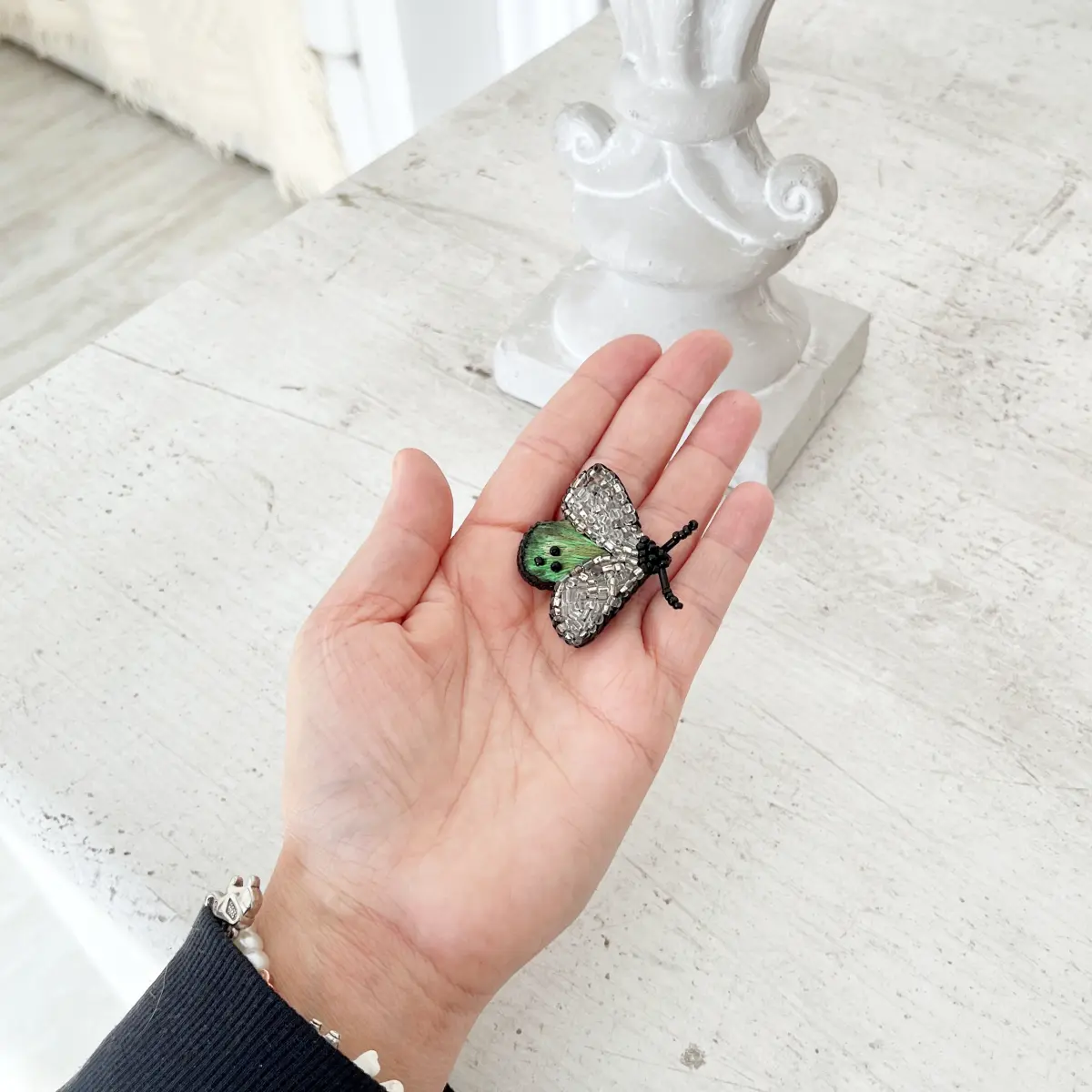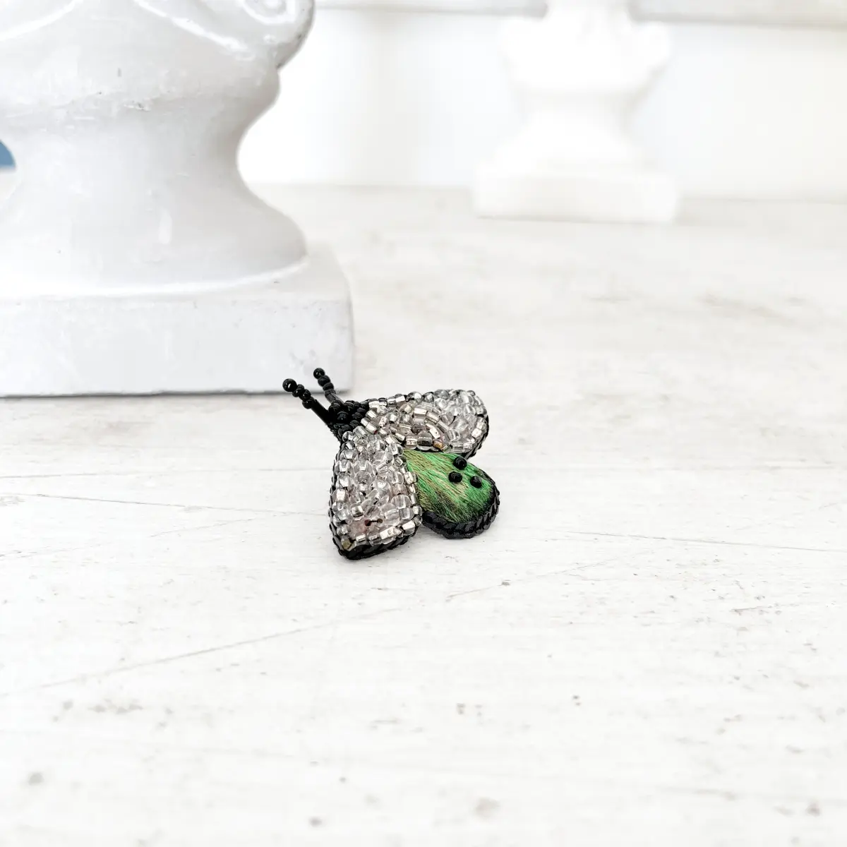 Broszka z serii BZYK powstała powoli, z uważnością i pasją. Ręczny haft pozwala wydobyć głębię koloru i nadać formie lekkości. Dzięki temu całość jest subtelna, ale i wyrazista. To ozdoba, która nie dominuje stylizacji, tylko pięknie ją dopełnia.