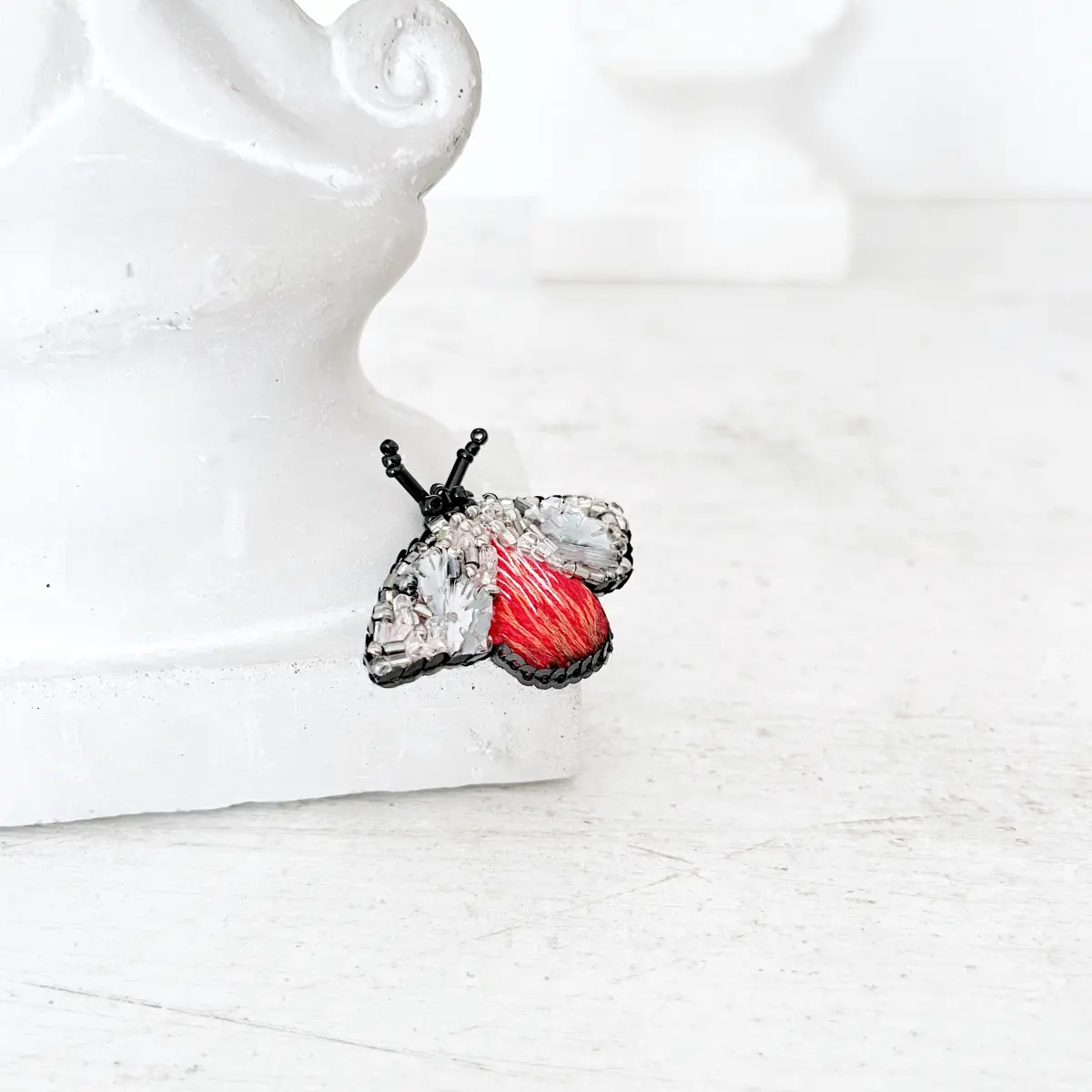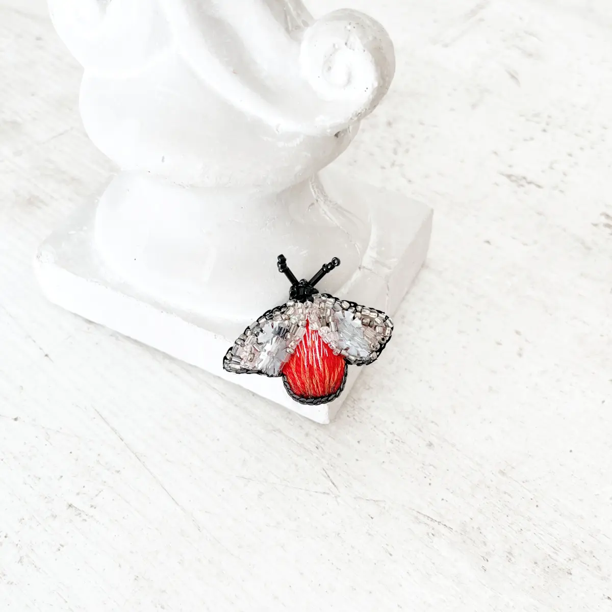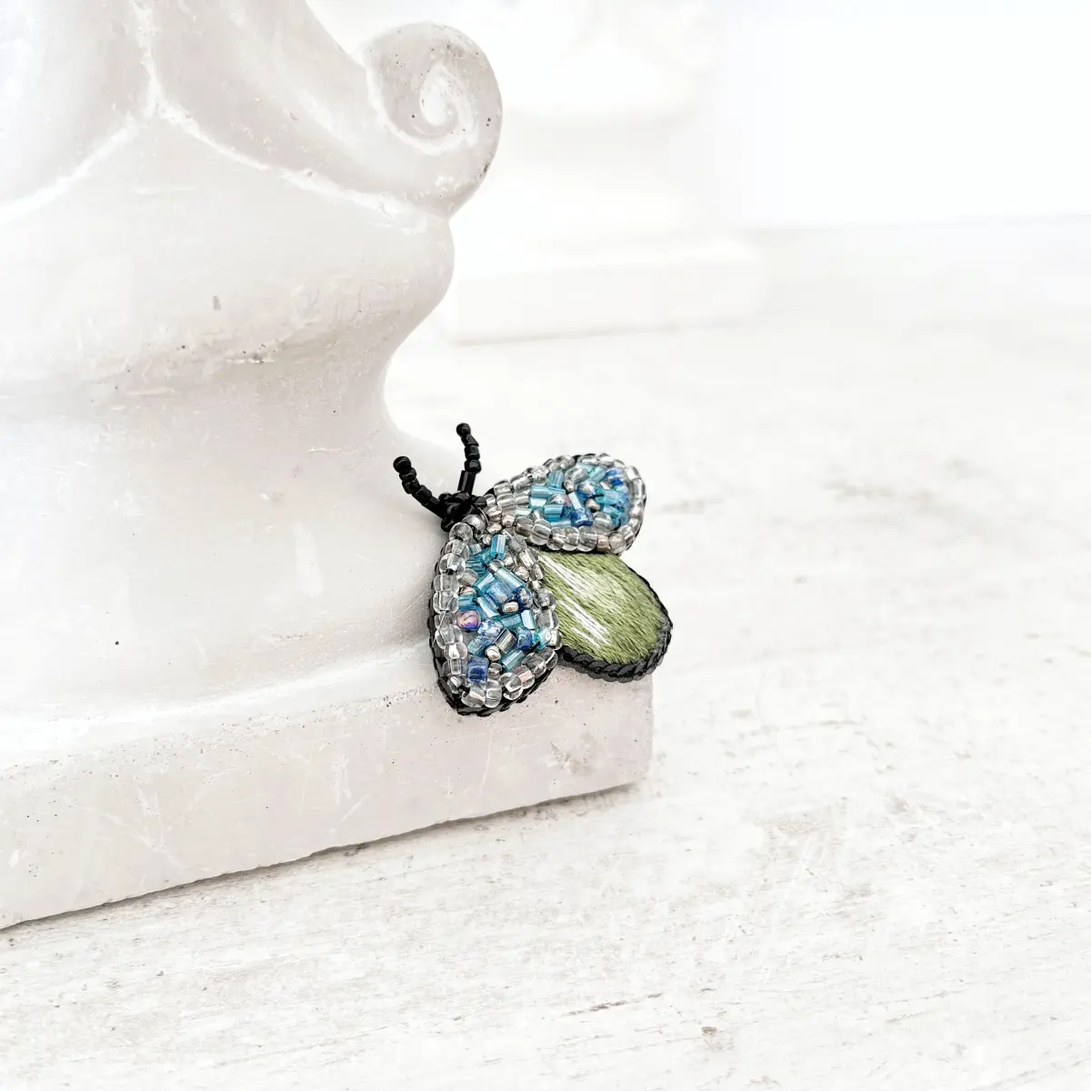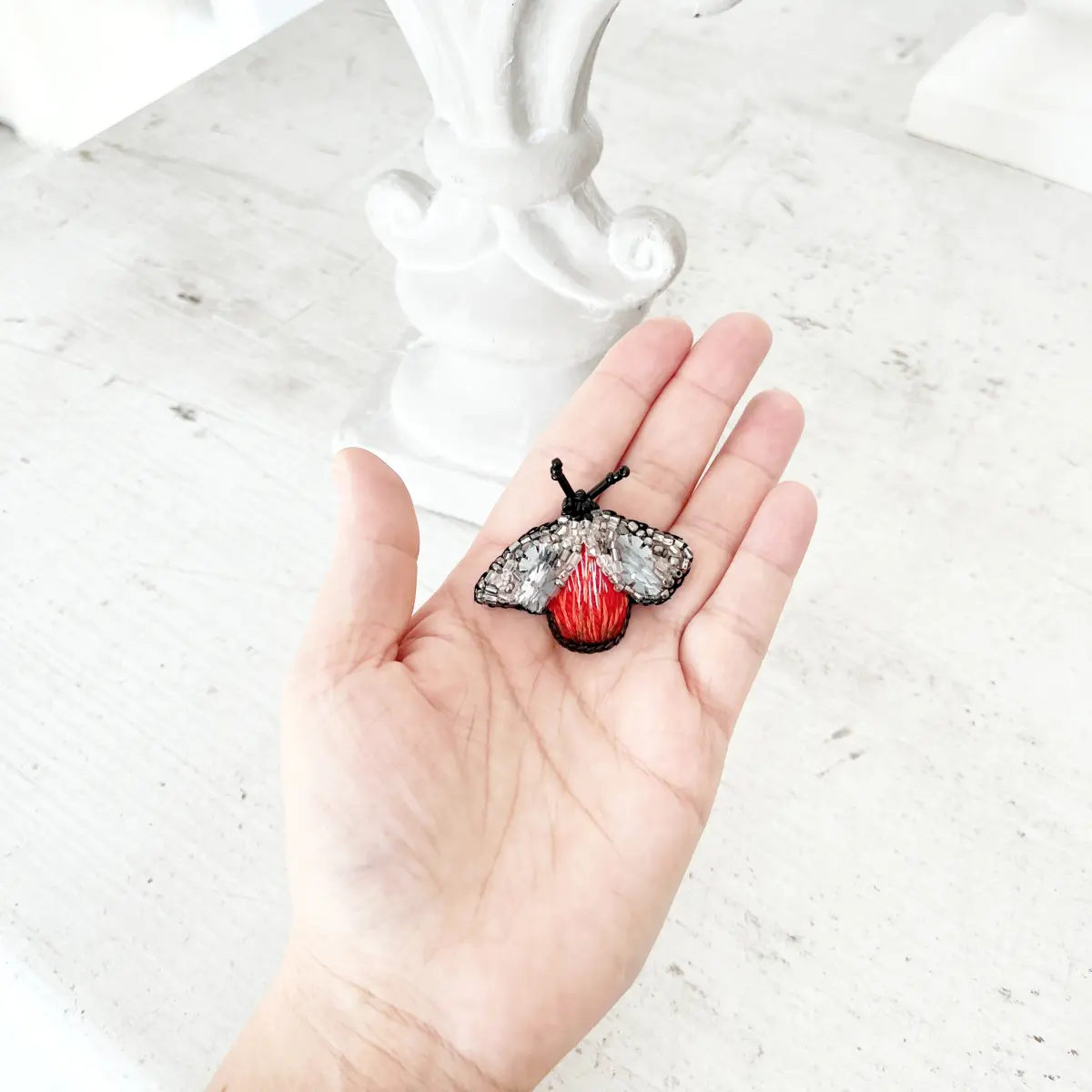 Broszka z serii BZYK powstała powoli, z uważnością i pasją. Ręczny haft pozwala wydobyć głębię koloru i nadać formie lekkości. Dzięki temu całość jest subtelna, ale i wyrazista. To ozdoba, która nie dominuje stylizacji, tylko pięknie ją dopełnia.