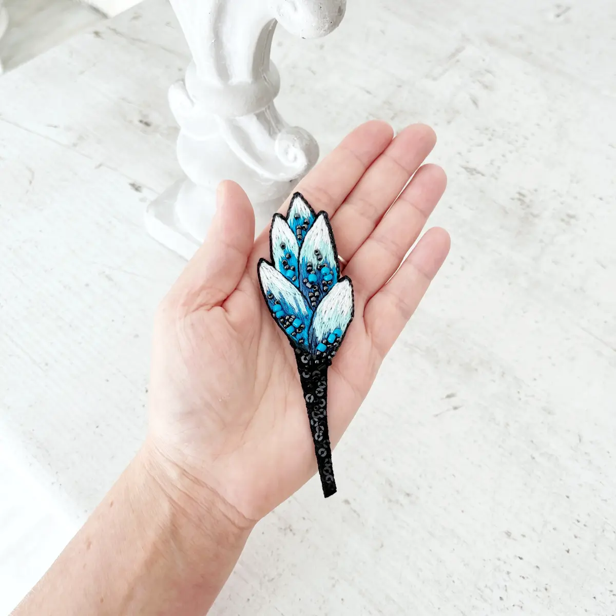 Delikatna, romantyczna broszka, którą możesz przypiąć do płaszcza, marynarki, swetra czy torebki. To ręcznie wykonana broszka, która powstała w jednym egzemplarzu. Nie ma i nie będzie drugiej takiej samej. Każdy ścieg, wszystkie koraliki zostały przyszyte ręcznie, więc masz pewność, że nosisz coś absolutnie wyjątkowego.
